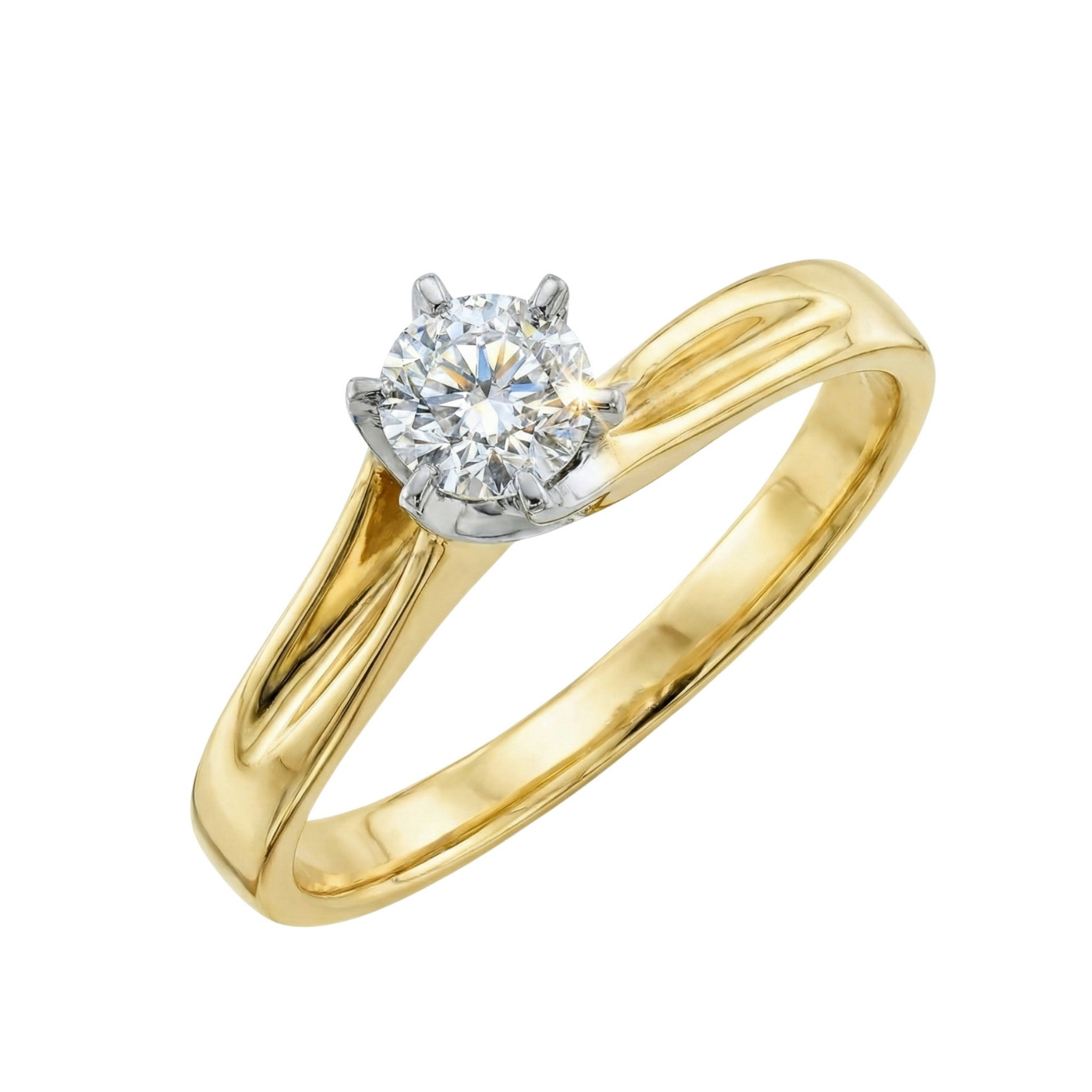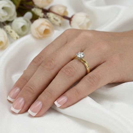 Złoty pierścionek z brylantem został wykonany z połączenia najwyższej jakości żółtego złota próby 585 (14K) oraz brylantu o masie 0,47 ct. Pierścionek wyróżnia się smukłą, dynamiczną formą, w której obrączka delikatnie wznosi się ku części centralnej, nadając całości wyrafinowanej lekkości. Brylant został efektownie wyeksponowany w wysokiej, eleganckiej oprawie, która podkreśla jego bryłę. Konstrukcja sprawia wrażenie płynnej i nowoczesnej, a jednocześnie bardzo szlachetnej. To projekt o luksusowym charakterze, przyciągający uwagę subtelną formą i perfekcyjnymi proporcjami. Całość prezentuje się minimalistycznie, tworząc przy tym szykowny efekt.