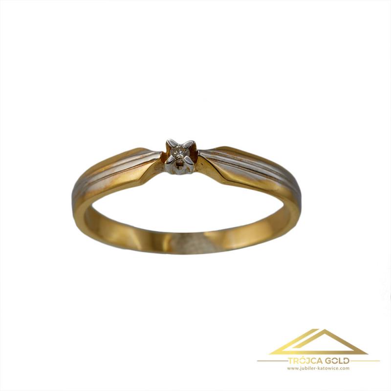 Złoty pierścionek z brylantem o masie 0,02 ct oraz wadze 1,61g