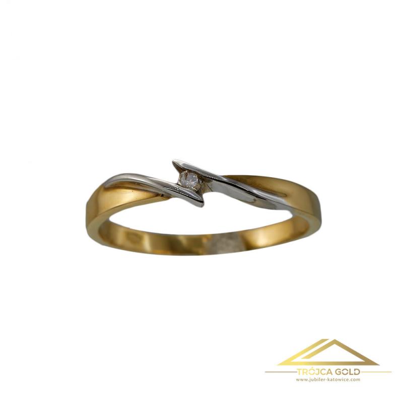 Złoty pierścionek z brylantem o masie 0,03 ct oraz wadze 1,79g