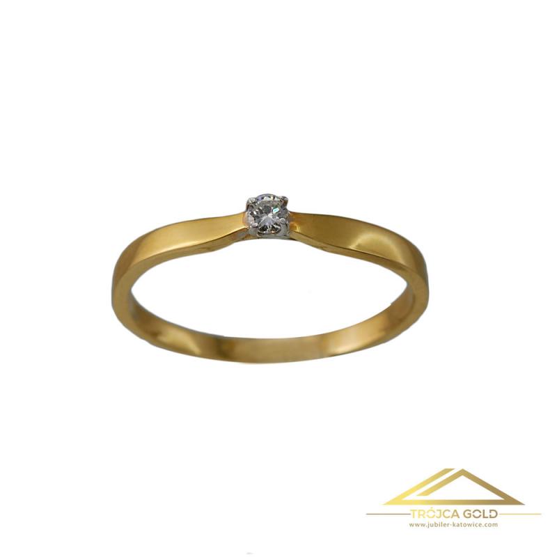 Złoty pierścionek z brylantem o masie 0,05 ct oraz wadze 1,16g