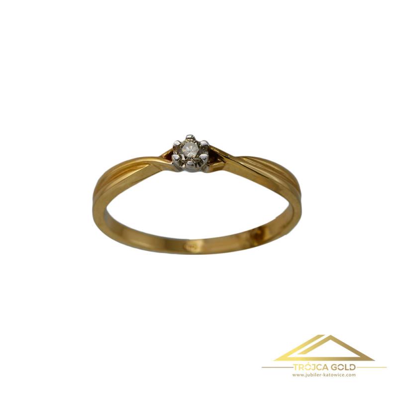 Złoty pierścionek z brylantem o masie 0,06 ct oraz wadze 1,63g