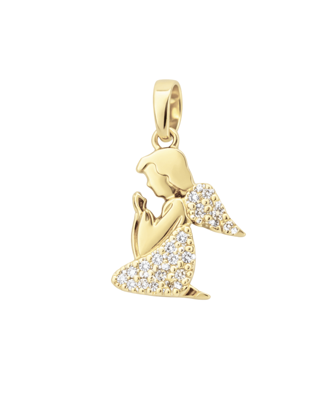 Wisiorek przedstawia postać klęczącego anioła w geście modlitwy. Został wykonany z żółtego złota próby 585, z dbałością o subtelne detale i proporcje sylwetki.