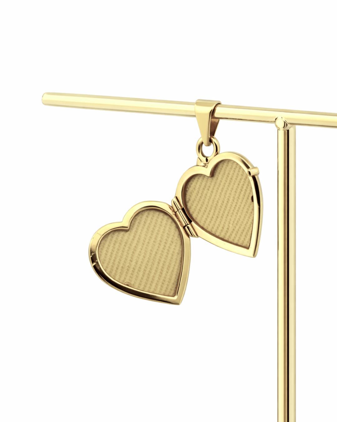 Wisiorek w kształcie serca został wykonany z wysokiej jakości żółtego złota próby 585. Model ma formę klasycznego sekretnika, który otwiera się na zawiasie, umożliwiając umieszczenie w jego wnętrzu zdjęcia lub drobnej pamiątki.